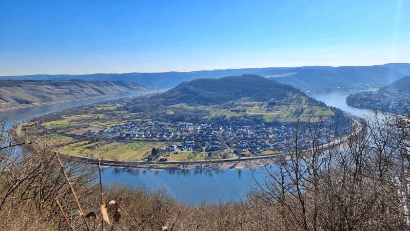 Spätestens an der Schutzhütte "Auf Riwisch" besteht dann kein Zweifel mehr: Tatsächlich ist es die Marksburg, die sich - von hier aus unverwechselbar - als einzig über die Zeit hinweg unbeschädigte Burg des Mittelrheins überaus gekonnt in Szene zu setzen weiß. Aber sie erinnert zugleich auch daran, dass sich das Obere Mittelrheintal nun langsam seinem nördlichen Ende nähert.