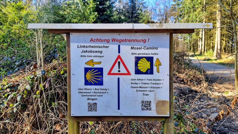 Am Waldsaum vorbei bleibt der Weg noch relativ eben. Ab der Quelle des Kripper Bachs beginnt dann eine kontinuierliche Steigung, die mit fast drei Kilometern bis auf den 360 Meter hohen Kronenstein anhält. Hier wechselt man nach rechts auf einen breiten Forstweg, mit dem sogleich wieder der Abstieg beginnt - und an dessen Ende mit Schloss Stolzenfels das heutige, zweifellose Highlight wartet.