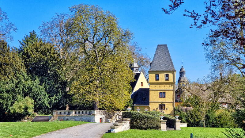 Schließlich kehren die Hochwiesen zurück, und mit Bassenheim wird das Etappenziel sichtbar. Hier lässt sich von der Straße aus noch ein kurzer Blick auf Burg Bassenheim werfen, die allerdings in Privatbesitz ist und nicht besichtigt werden kann. Gegenüber befindet sich die St. Martin-Kirche. Daneben die Bushaltestelle, von der man mit der Linie 350 nach Koblenz gelangt.