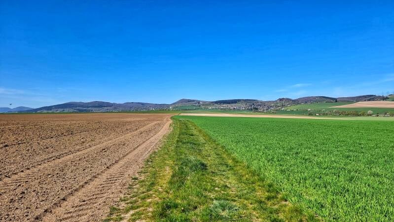 Mit dieser Verlängerung setzt dann allerdings auch der anstrengendste Teil ein. Dafür ist es zugleich der entscheidende Anstieg aus dem Neuwieder Becken heraus und zurück in die Berghänge des Mittelrheintals. So führt der geschwungene Weg für knapp drei Kilometer den finalen Wiesenhang hoch, während der langsam, aber stetig näherkommende Waldsaum signalisiert: Bald bist du oben!