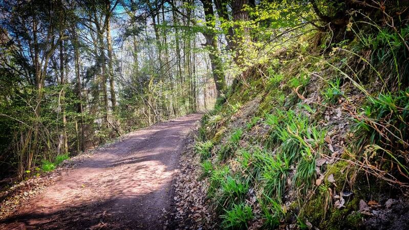 Mit einem angenehmen Gefälle, das bis zur L 116 reicht, gleicht man einen Teil der gerade erst bewältigten Höhenmeter schnell wieder aus. Offiziell endet die Etappe dann auch an dieser Straße, und es wird auf einen Zuweg in Richtung Andernach verwiesen. Mein Plan sah dagegen vor, noch sieben Kilometer bis Namedy weiterzuwandern.