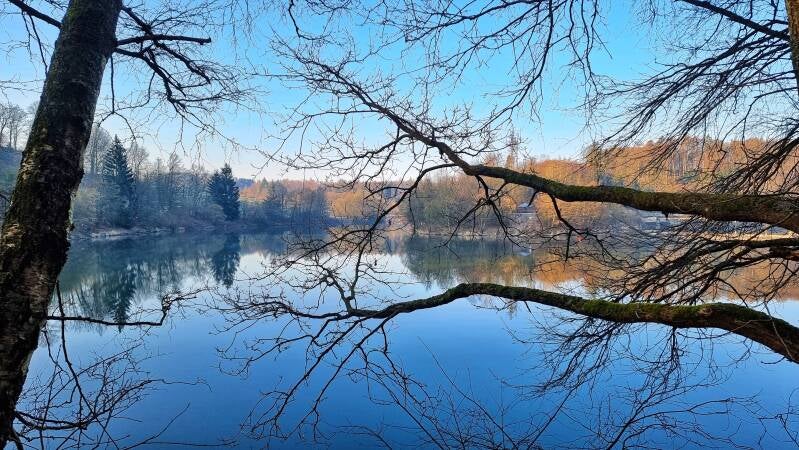 Das Überqueren der Wupper-Vorsperre markiert dann ziemlich genau die Hälfte des Weges, und man beginnt am östlichen Wupper-Ufer entlang den Rückweg. Bevor aber wieder der Parkplatz in Sichtweite kommt, wird auf diesem weiterhin einfachen, auch als "Walkmühle" bezeichneten Abschnitt noch eine kleine Fitness-Station dazu einladen, jenes Maß an körperlicher Ertüchtigung nachzuholen, das auf dieser kleinen Runde - zumindest gefühlt - zu kurz gekommen ist :-)