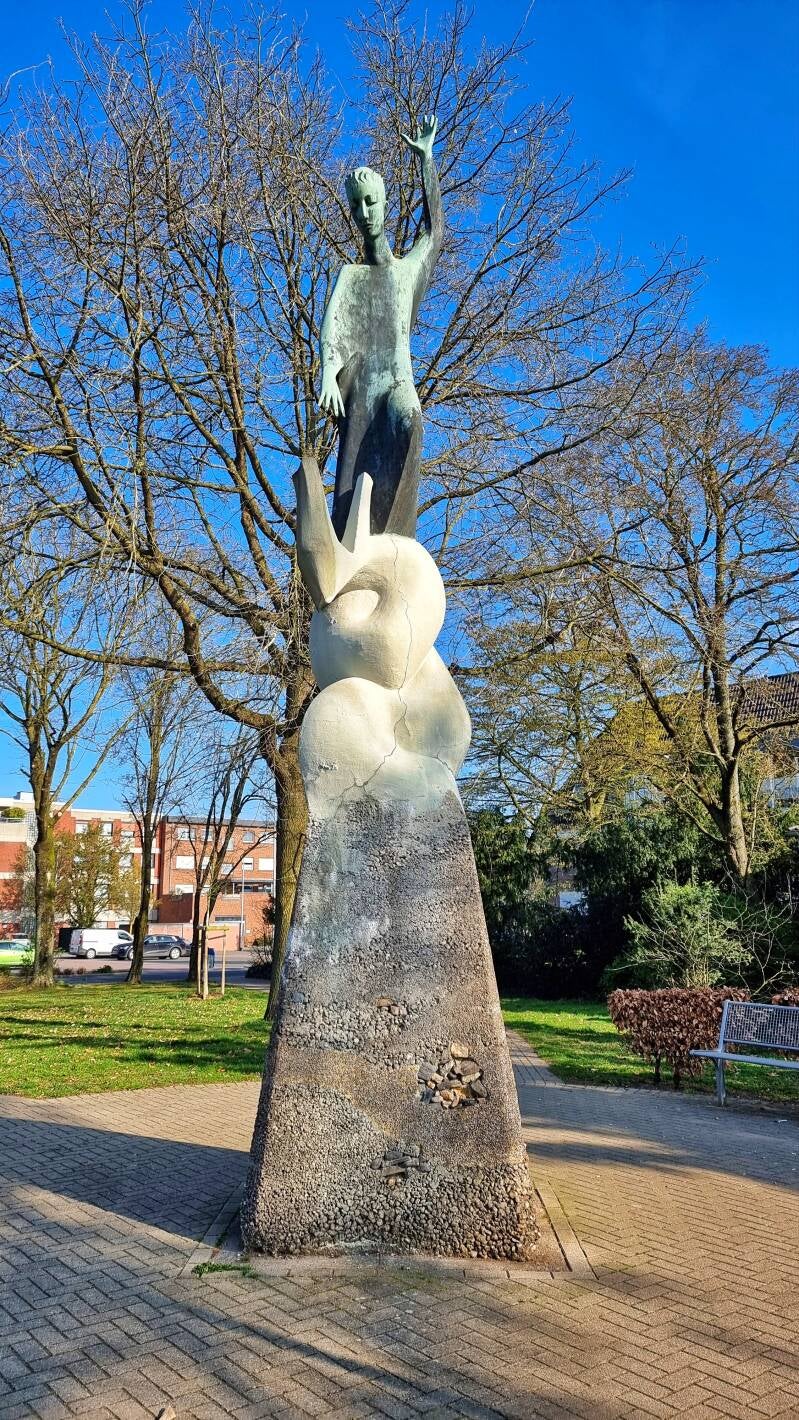 Hier wird der Wanderer am Ortsrand von dem Ehrenmal "Michaels Kampf" empfangen, das den Sieg des Erzengels Michael über den Drachen als Symbol des Teufels darstellt.