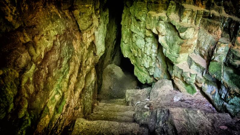 Bevor wir so erneut, diesmal jedoch aus westlicher Richtung, zurück in die Wolfsschlucht gelangten, passierten wir noch eine Grotte, hinter der sich ein enger Felsspalt zu einer 40 Meter tiefen Höhle verbirgt. Da wir aber weder Taschenlampe noch Stirnlicht dabei hatten, sahen wir von einer weiteren Begehung ab.