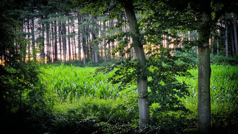 Ziemlich genau zur Hälfte wendet sich die Route vom Schaephuysener Höhenzug ab und wechselt mit dem "Linder Steg" in östliche Richtung. Hinter der L 478 führt der Hoemannsdyk dann über den ziemlich zugewachsenen Landwehrbach, bevor er sich einem Waldgebiet nähert und hier in den Lindenbommsweg übergeht.