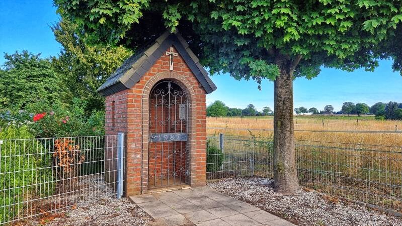 Die heutige, offiziell ausgeschilderte Tour bedient sich stattdessen meist gut begehbarer Hauptwege, die den Höhenzug seitlich begleiten. Das geht zwar auf Kosten des Abenteuerfaktors, bietet aber auch deutlich mehr Ausblicke über die weite niederrheinische Landschaft hinweg. Außerdem warten mit der Rheurdter Turmwindmühle, dem "Schönstatt"-Bildstock im Wald und Schloss Bloemersheim weitere schöne Stationen auf dieser 13 Kilometer langen Etappe.