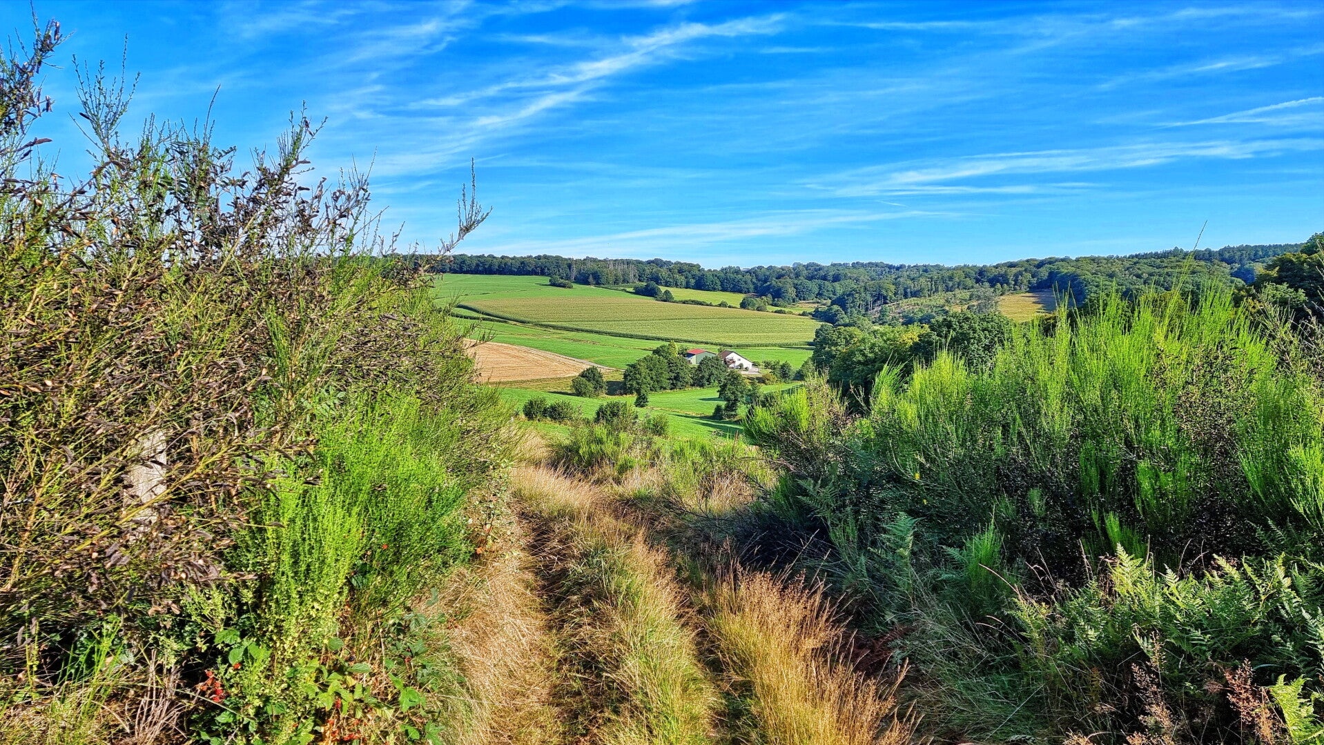 Dann aber muss man an einer bestimmten Stelle, wo der Track nach rechts abbiegt, höllisch aufpassen. Weil nämlich auch hier ein entscheidendes Wegelogo fehlte, lief ich (und das trotz aktiver GPX-Führung) zunächst in die falsche Richtung. Den Irrtum bemerkte ich auf einer Wiese, wo nirgendwo mehr ein Weg zu erkennen war und ich deshalb erst dort einen verwunderten Blick auf die Karte warf.