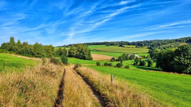 Das plötzliche Auftauchen der B 483 bricht dann die weitgehende Ungestörtheit auf den bisherigen 22 Kilometern ziemlich brutal ab. Doch kaum hat man den Feldweg auf der anderen Seite betreten, leiten die gleich hinter der ersten Kuppe auftauchenden Häuser von Radevormwald das Finale ein.