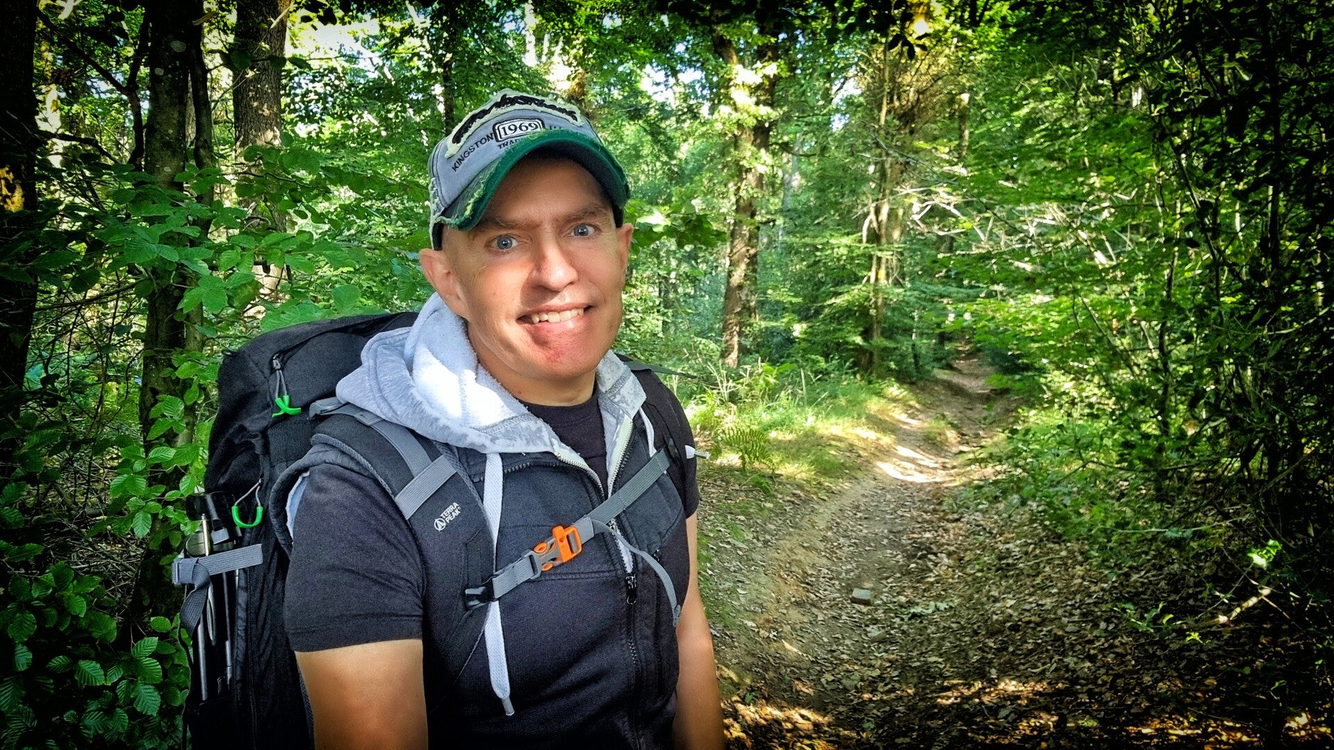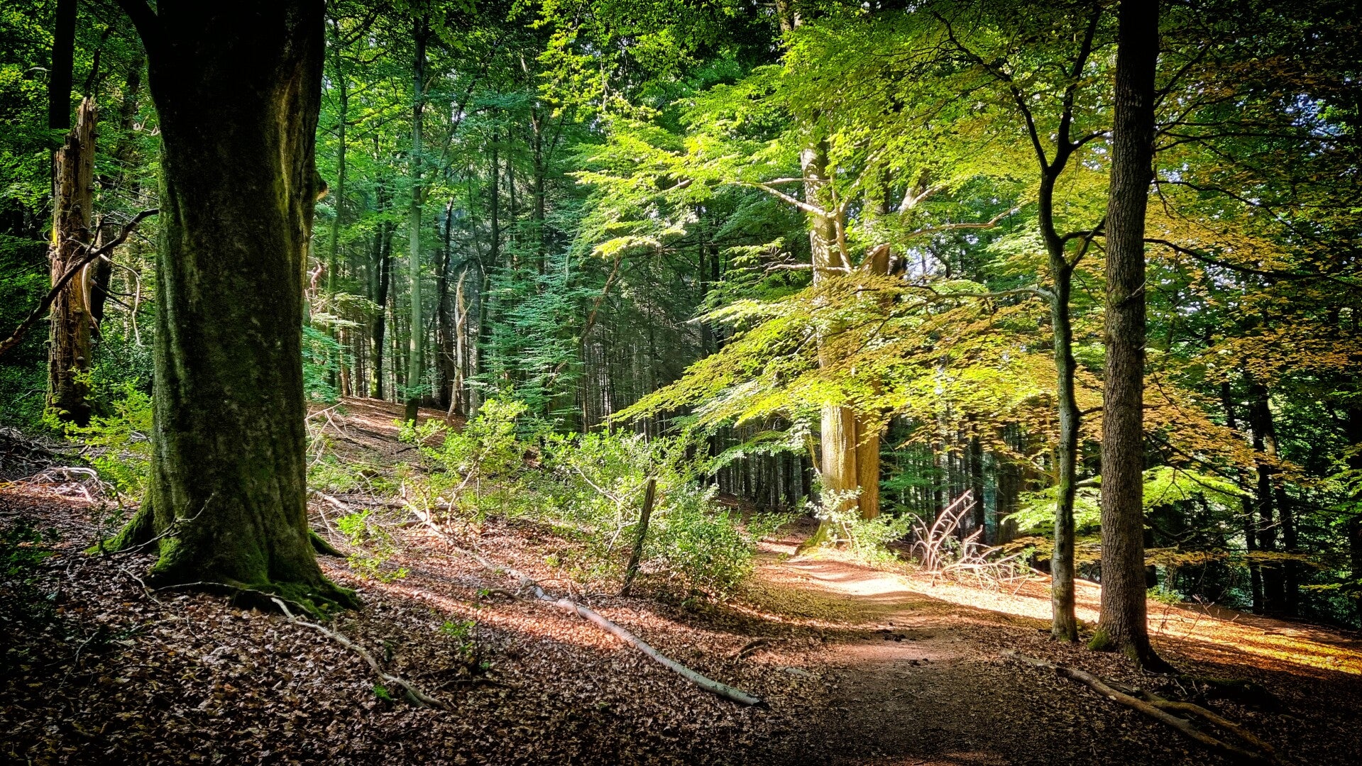 Als korrekte Route entpuppte sich ein unscheinbarer Waldpfad. Er entschwindet sogleich ins Dunkel der Bäume und ist deshalb vom Hauptweg aus nur zu erkennen, wenn man gleichzeitig weiß, dass er da ist. Diesen Effekt erlebte ich auf dem Panoramasteig schon einmal. Er macht die Sache ungleich spannender und war mir ehrlicherweise im Grunde auch äußerst willkommen. Schließlich gehört eine verzwickte Lage wie diese beim Wandern irgendwie auch dazu. Aber wer nicht aufpasst oder in solchen Situationen kein Backup dabei hat, kann - besonders in dünn besiedelten Gebieten - auf diese Weise auch gehörig baden gehen.