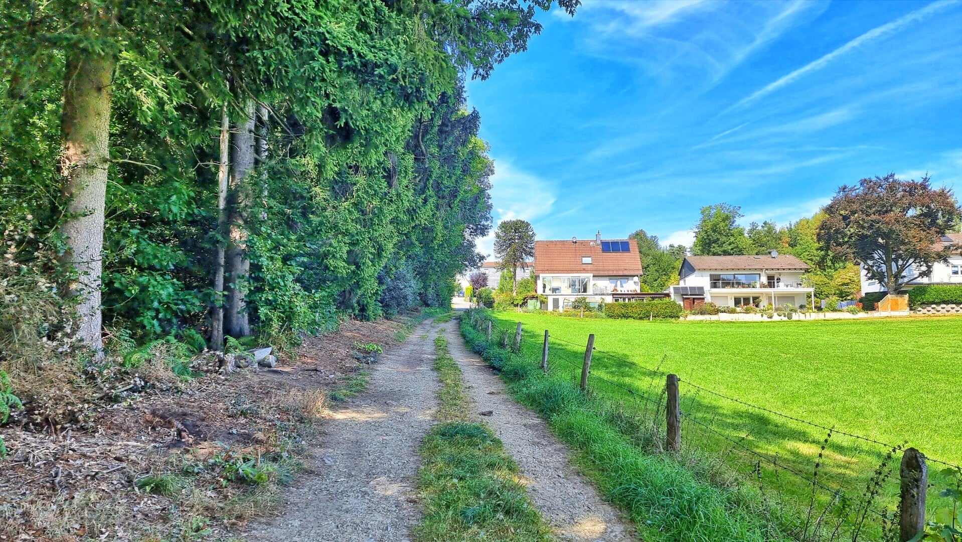 Der Waldpfad ist einer der urigsten Sorte, mündet aber schließlich auf eine asphaltierte Straße. Die führt durch das beschauliche Egen, bevor auf einem rechts abgehenden, teils verwilderten Pfad das nächste kleine Abenteuer startet. Dann folgt eine weitere Asphaltpassage, diesmal durch "Birkenbaum". Hier kann man dann einen der diesmal etwas selteneren Panoramablicke genießen.