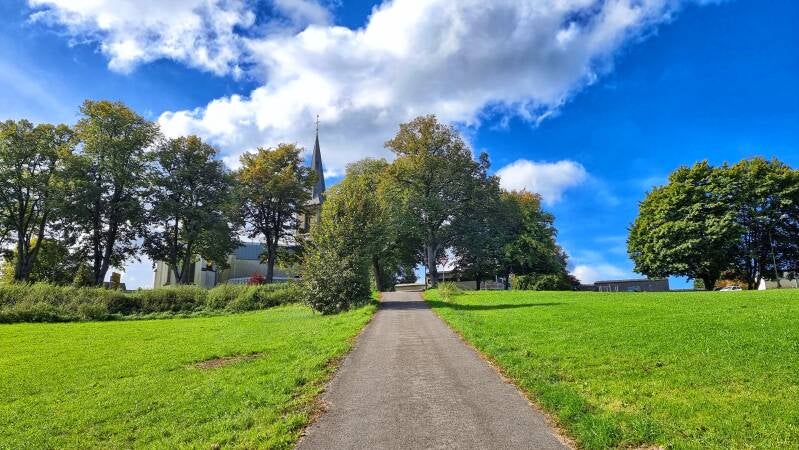 Durch das Osbachtal kurz unterbrochen, folgt nun der spürbare Anstieg nach Bechen. Ein größerer und belebter Ort, auf dessen anderer Seite man angesichts des einsetzenden Gefälles gerne glauben will, die mühsamsten Abschnitte hinter sich zu haben. Und doch steht der höchste Punkt der Etappe immer noch bevor.