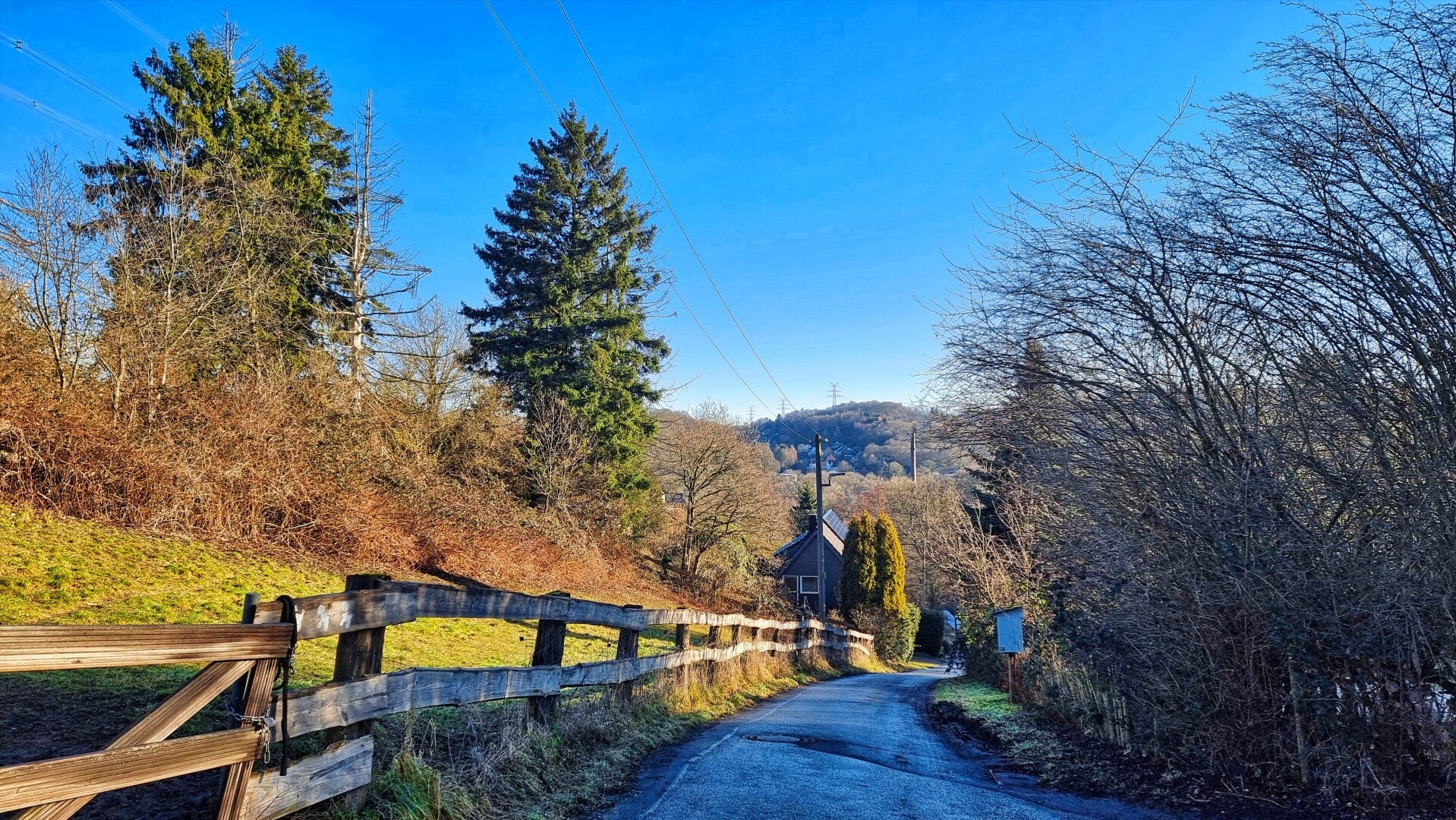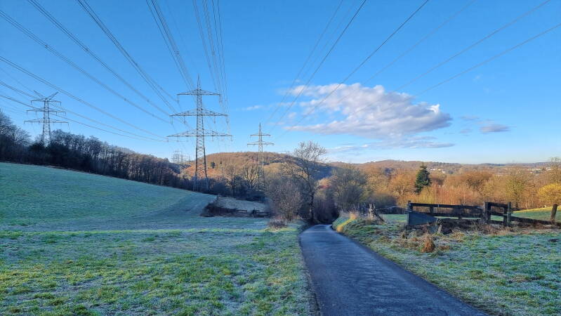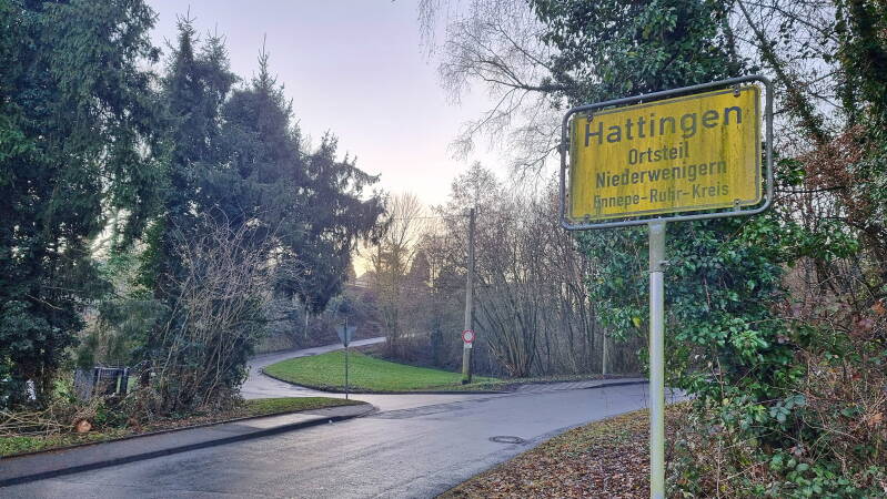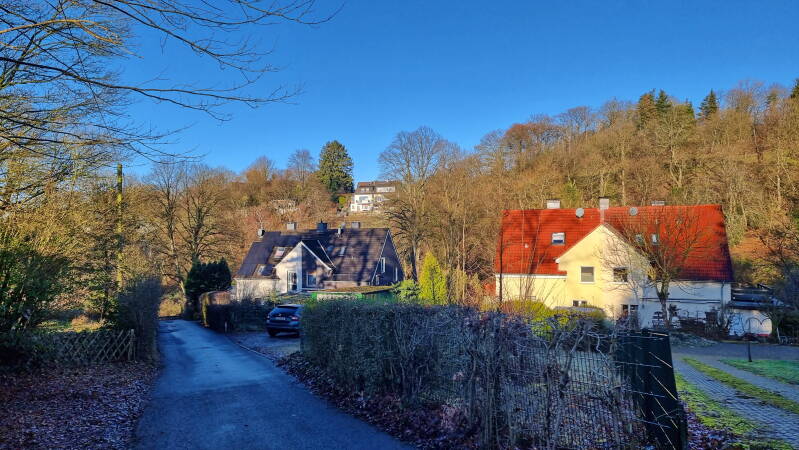 Mein Bus, von dem ich hoffte, dass er bis nach Hattingen fuhr, beendete seine Fahrt schon in Burgaltendorf. Das stellte mich vor die Entscheidung, 20 Minuten auf den nächsten Bus zu warten, oder gleich hier loszuwandern. Natürlich entschied ich mich für letzteres, auch wenn dies entlang der L 925 noch keinen landschaftlichen Hochgenuss darstellte. Aber so konnte ich mich wenigstens schon mal warmlaufen.