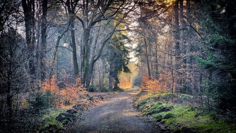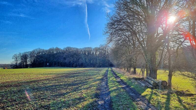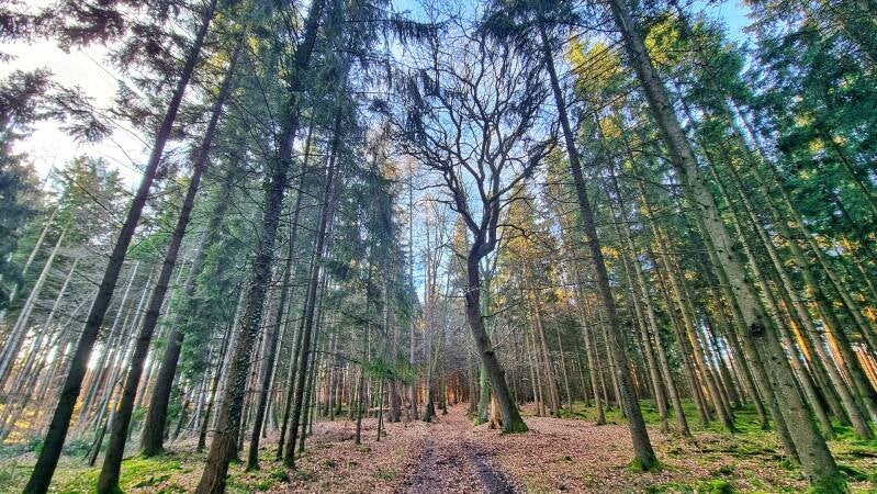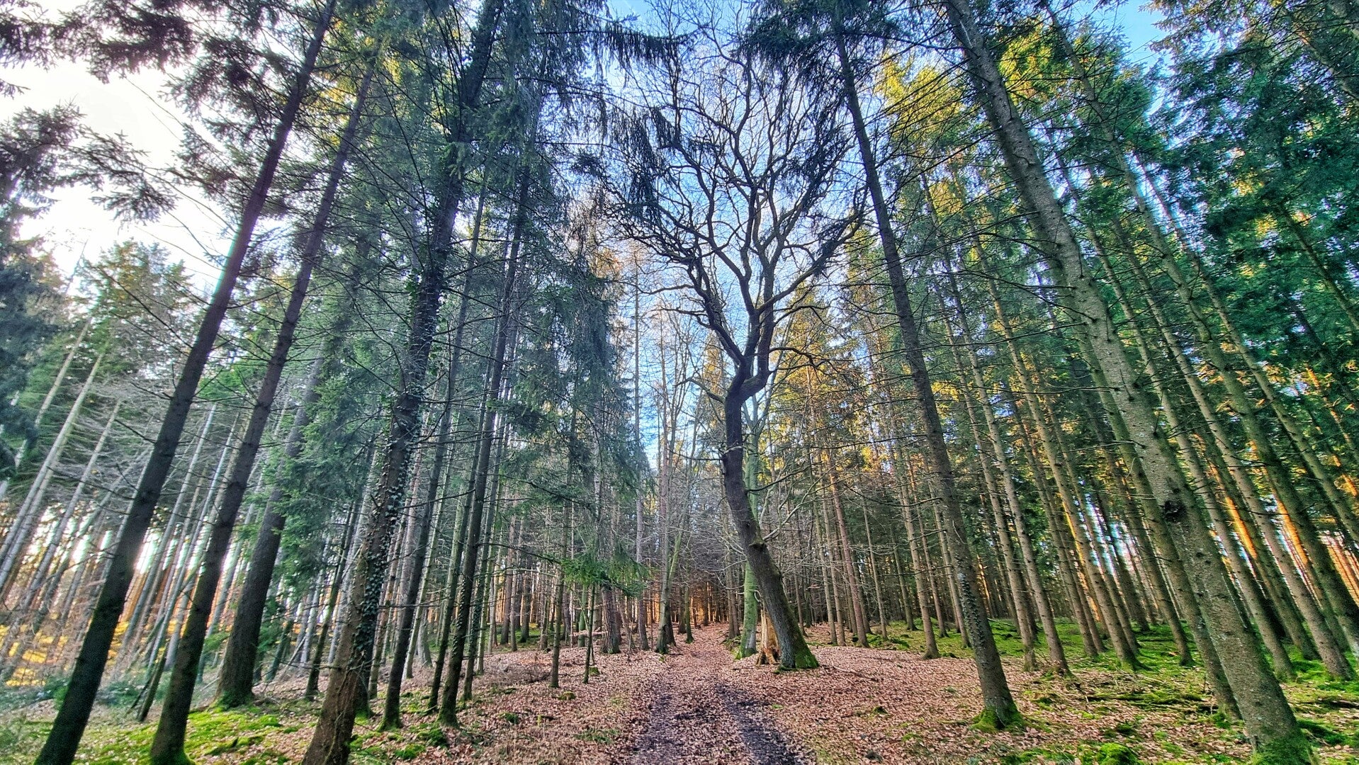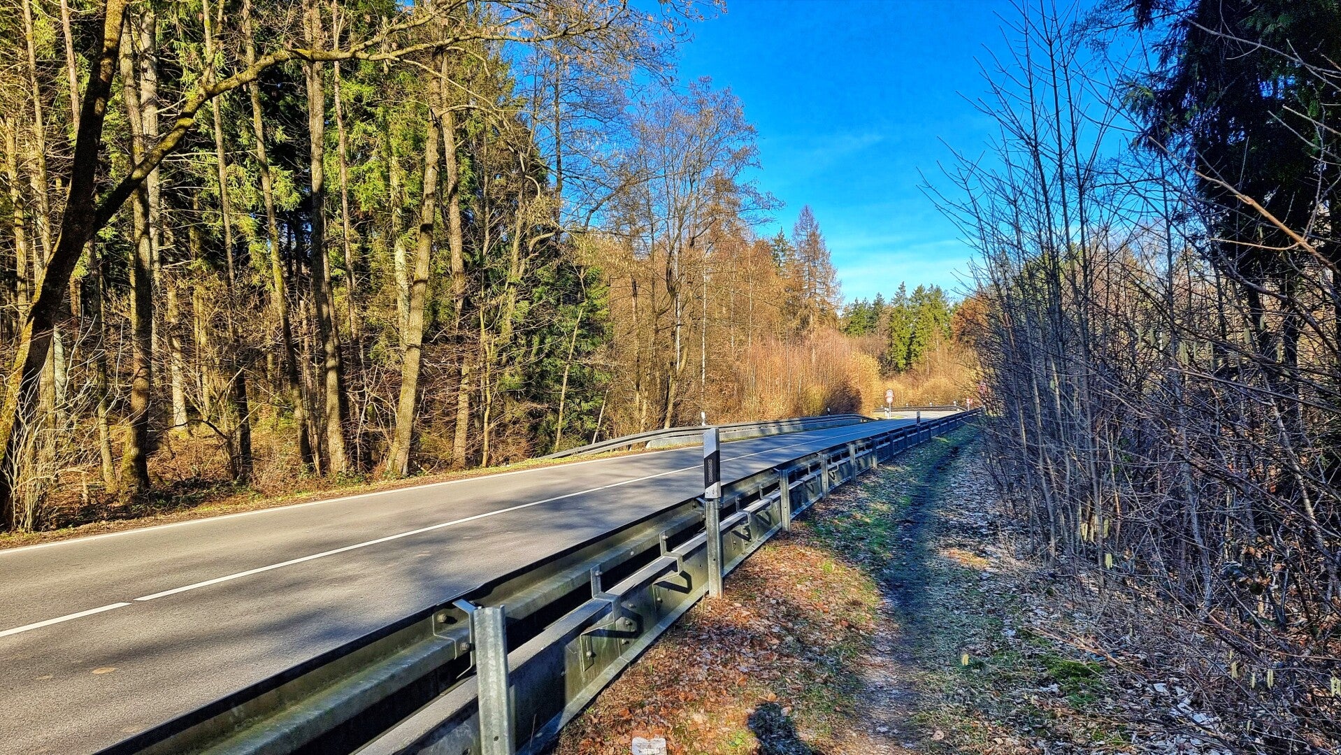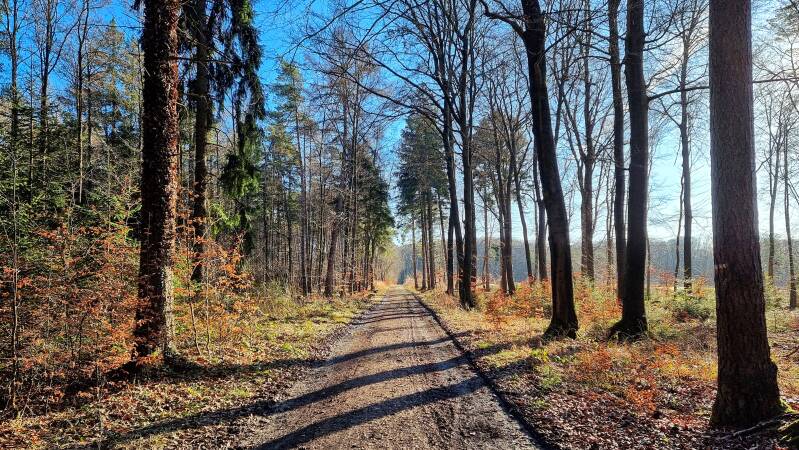 Zunächst sollte das Wanderabenteuer aber auch heute wieder eher unspektakulär beginnen, woran die breiten Forstwege einen wesentlichen Anteil haben. Für die zauberhaftesten Momente sorgte dagegen die Sonne: sie brach durch das kahle Geäst und verwöhnte mich mit wunderschönen Lichtreflexen.