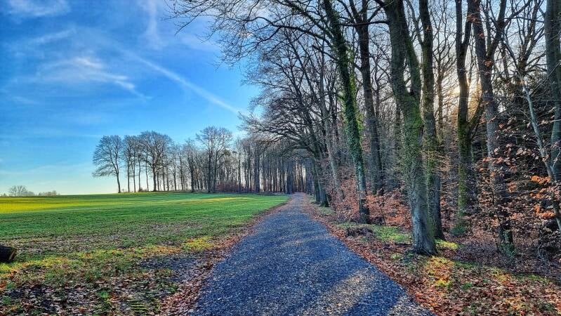 So ließ sich "Plan B", der neben einem alternativen Fahrweg bis Wallenhorst noch einen vier Kilometer langen Fußweg zum eigentlichen Startpunkt in Bramsche-Engter zur Folge gehabt hätte, vorzeitig abhaken. Das war vorteilhaft angesichts der Tatsache, dass ich Kraft und Ausdauer auch viel lieber in die herbeigesehnten westlichen Ausläufer des Wiehengebirges zu investieren gedachte. Und tatsächlich sollte die Anzahl der Höhenmeter nun - etappenübergreifend - kontinuierlich zunehmen.