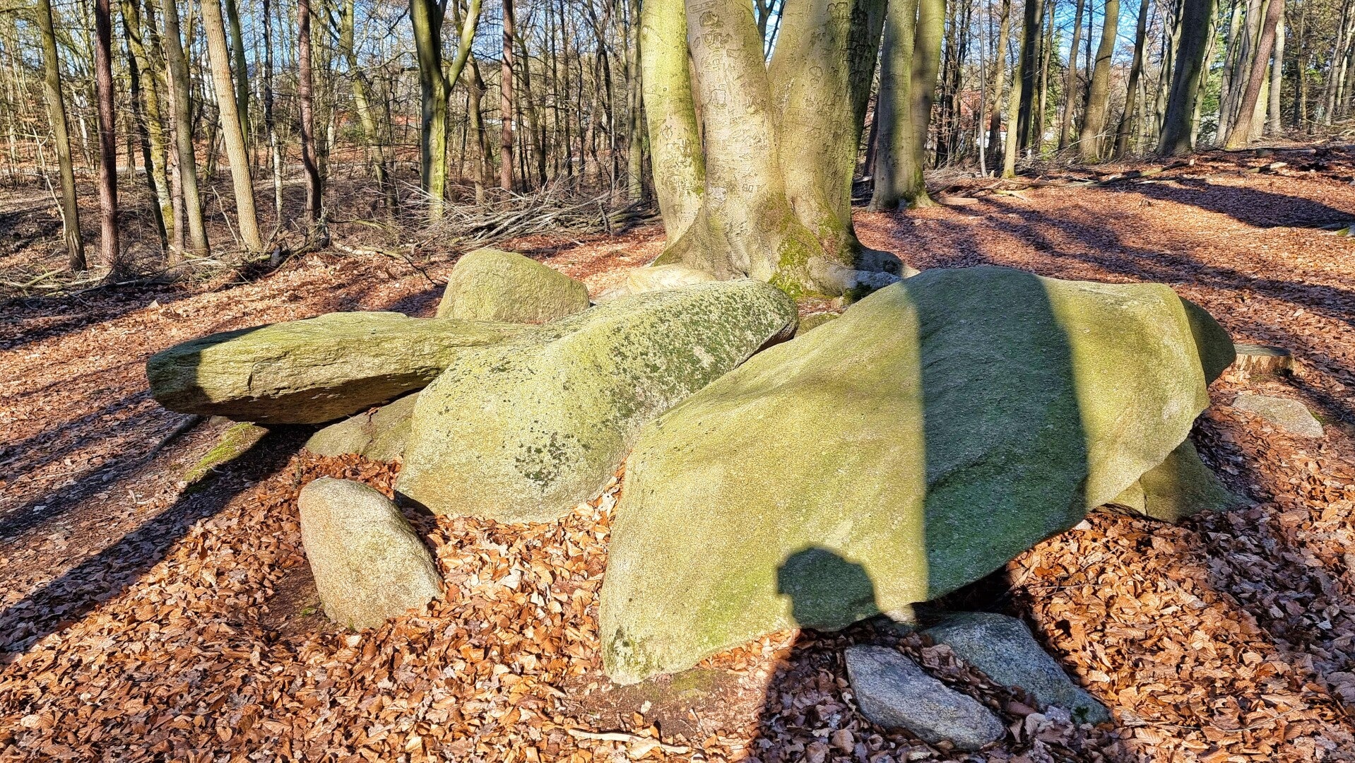 Nach einem kurzen Stück durch Vehrte gelangt man in den Wald zurück, und damit zu "Teufels Backtrog": Ein Megalithgrab, das man ein paar Schritte abseits des Weges findet und dessen Findlinge sogar noch ihre jeweils ursprüngliche Funktion als Trag- oder Decksteine gut erkennen lassen.