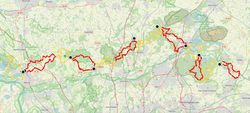 Unabhängig davon hat mein Fund der alten Trackdaten jedoch meine absolute Neugier beflügelt, der ursprünglichen "Hohe-Mark-Waldroute" auf den Grund zu gehen. Sprich: sie ebenfalls komplett abzuwandern und natürlich auch zu dokumentieren. Erst recht wegen der schon jetzt spürbaren Freude, die das Wiederbeleben in Vergessenheit geratener Dinge mit sich bringt.
